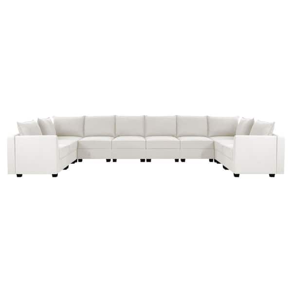 164.38 in. 10-piece Linen U-Shaped Sectional Sofa in. White Down with Contemporary Design