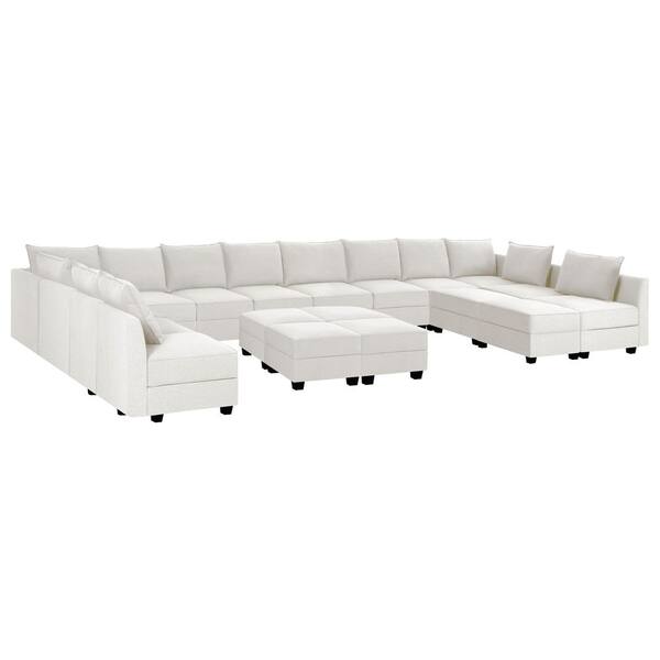 215.96 in. Armless 13-piece Linen U-Shaped Sectional Sofa in. White Down with 6 Ottomans for Living Room or Office