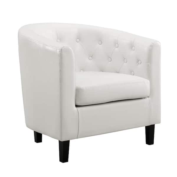 29.5 in. Rolled Arm Faux Leather Curved Button-Tufted Sofa in White