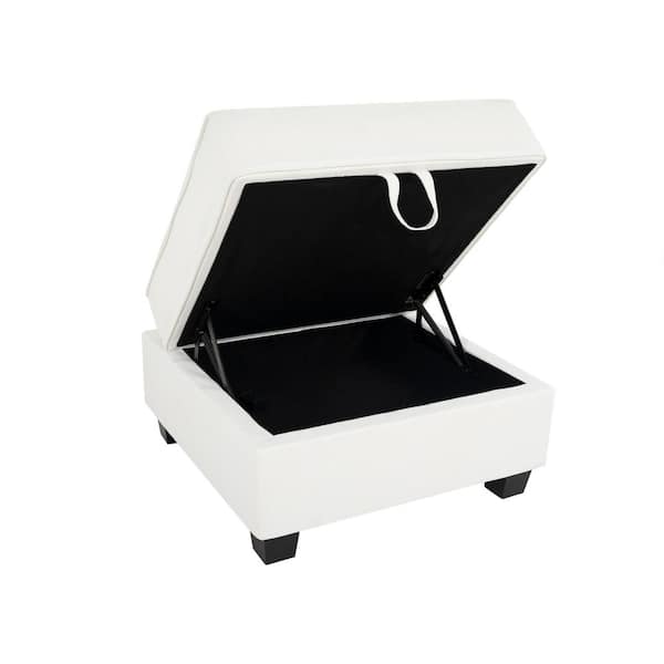 56.1 in. Straight Arm 2-piece Linen Rectangle Sectional Sofa in. White Down with Ottoman for Living Room