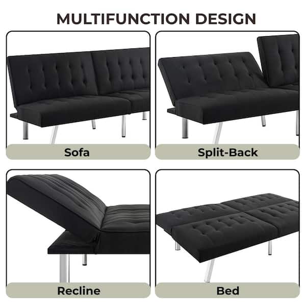 68.5 in. W Tufted Split Back Linen Futon Sofa Bed in Black, Convertible Sleeper Couch for Living Room