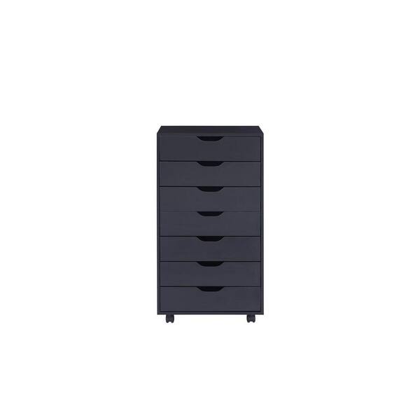 7-Drawer Black Wood 18.9 in. W Under Desk Vertical File Cabinet with Rolling Wheels for Office, Studio