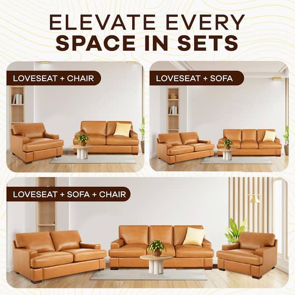70.87 in. Wide Round Arm Genuine Leather Mid-Century Modern Rectangle Sofa Loveseat in Loveseat