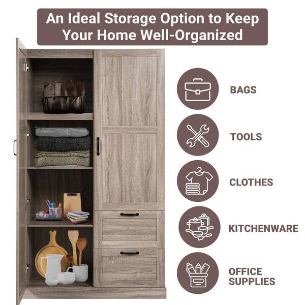 71.06 in. Multipurpose Armoire Wardrobe Closet with Drawers, Vintage Oak Finish