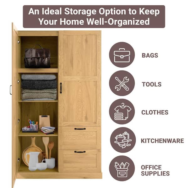 71.06 in. Multipurpose Armoire Wardrobe Closet with Drawers in Natural Wood Finish