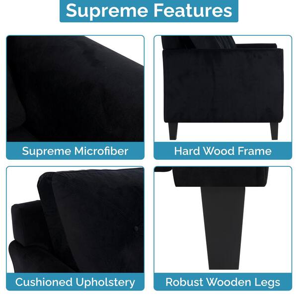 79.92 in. Rectangle Arm Microfiber Square Button Tufted Sofa in Black