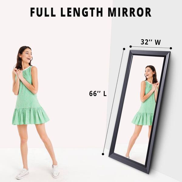 Black 32 in. W x 66 in. H Rectangle Wood Full Length Mirror, Sleek Standing Mirror for Bedroom