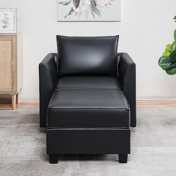 Contemporary 1-Piece Black Air Leather Straight Arm Accent Chair with Ottoman