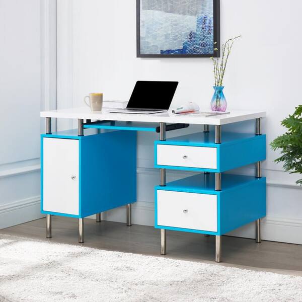 Contemporary 47.2 in. 2-Tone Computer Desk for Home Office,Student Writing Desk w/ 2 Drawers,1 Cabinet and Keyboard Tray