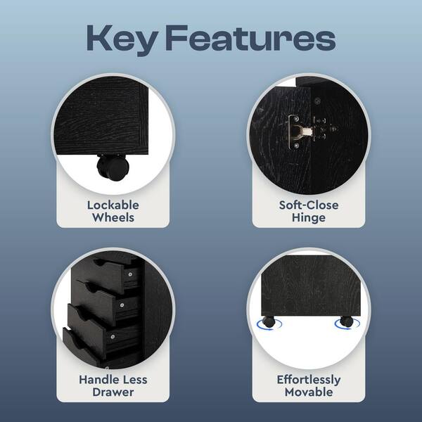 Distressed Black Wood 5-Drawer Vertical Storage File Cabinet with Shelves and Makeup Drawer-30.7 in. W