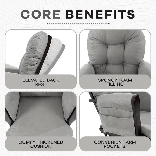 Espresso Nursery Glider and Ottoman Set with Dark Gray Cushion, Rocking Chair for Breastfeeding and Maternity Comfort