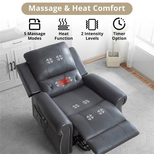 Gray Studded Air Leather Power Lift Reclining Chair with Massage, Recliner Chair with Remote and Footrest