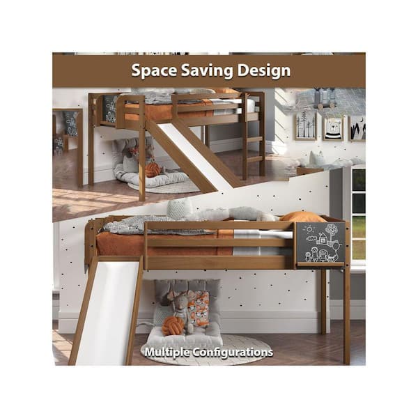 Latte Twin Loft Bed with Slide-Kids Bed with Slide, Fun Toddler Bed, Space-Saving Wooden Loft Bed