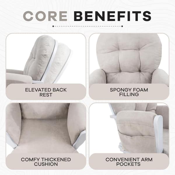 Light Gray Nursery Glider and Ottoman Set with Light Gray Cushion, Rocking Chair for Breastfeeding and Maternity Comfort