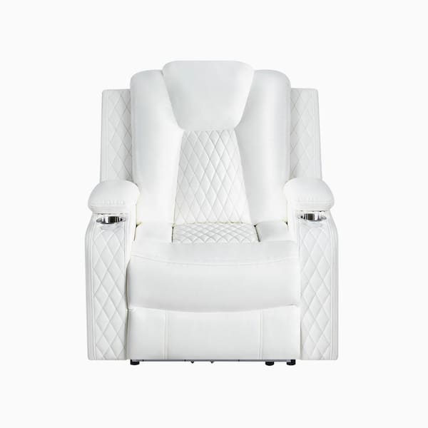 Motion Recliner Chair in Home Theater Style with Adjustable Headrest in White
