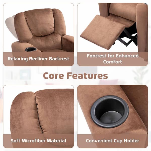 Push Back Brown Microfiber Kids Recliner Chair with Footrest and Cup Holder, Toddler Recliner for Ages 3+