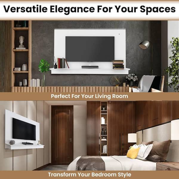 White/White 55 in. Floating Entertainment Center with 2 Sliding Doors and Shelves for TVs up to 55 in.