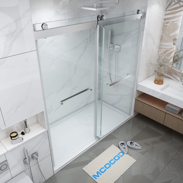 56-60.75 in. W x 79 in. H Double Sliding Frameless Soft Close Shower Door in Brushed Nickel with 3/8 in. Clear Glass