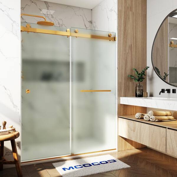 56-61 in. W x 76 in. H Double Sliding Frameless Smooth Sliding Shower Door in Brushed Gold with 3/8 in. Frosted Glass