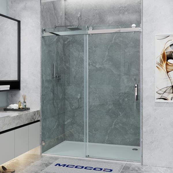 70-76.5 in. W x 79 in. H Single Sliding Frameless Soft Close Shower Door in Chrome with 3/8 in. Clear Glass