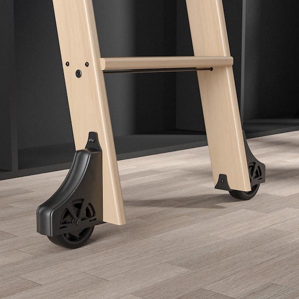 92 in. Clear Pre-Finished Maple Library Ladder (104 in. Reach) Black Top Hook Ladder Kit with 12 ft. Rail