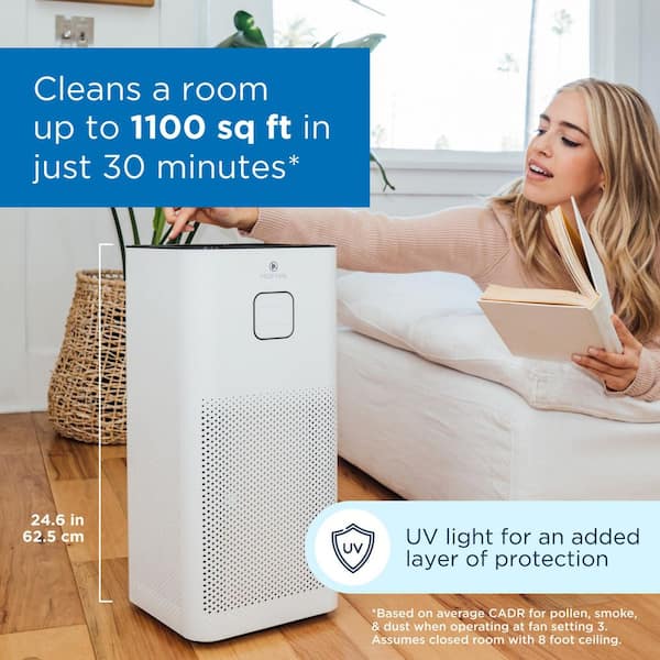 Air Purifier H13 HEPA Filter with 1100 sq. ft. Coverage 99.9% Removal to 0.1 Microns White (1-Pack)