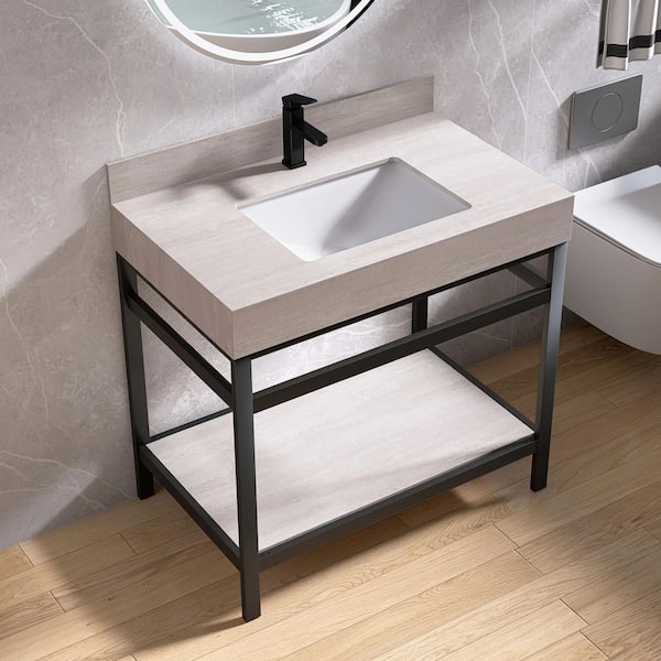 36 in. Beige Composite Sintered Stone Top and Shelf with Bathroom Sink and Matte Black Bracket
