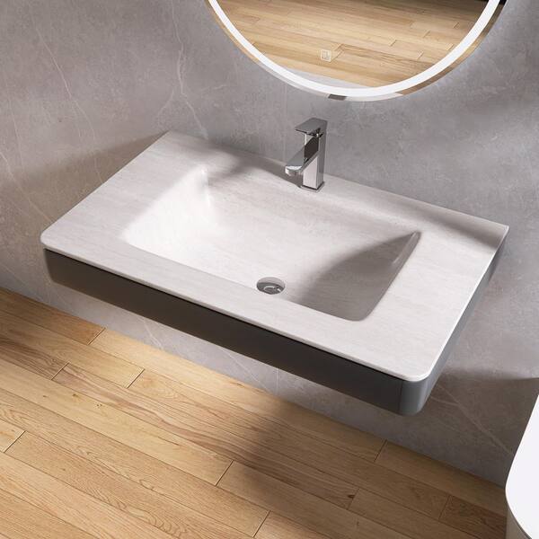 36 in. W x 22 in. D x 6 in. H Engineered Stone Limestone Plate Bathroom Wall-Mount Sink in Beige with Faucet Hole