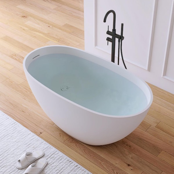 51 in. x 27 in. Stone Resin Solid Surface Flatbottom Freestanding Soaking Bathtub in White