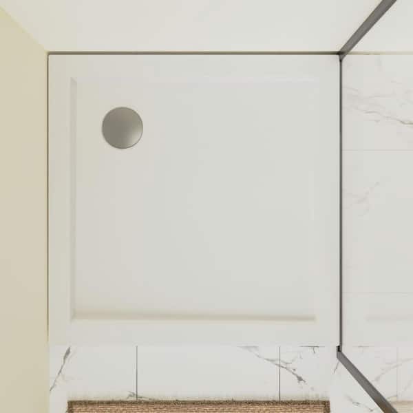 34 in. L x 34 in. W Single Threshold Alcove Shower Pan Base in White with Left Drain and Stainless Steel Cover
