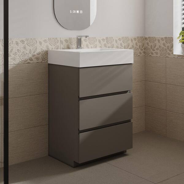 Aaby 24 in. W x 18 in. D x 37 in. H Bath Vanity Cabinet in Gray with White Solid Surface Top and Sink