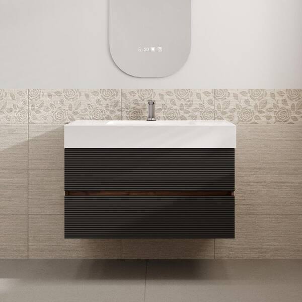 Aaby 36 in. W x 18 in. D Wall Mounted Floating Bath Vanity Cabinet in Black with White Solid Surface Top and Sink