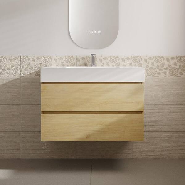 Aaby 36 in. W x 18 in. D x 25 in. H Wall Mounted Floating Bath Vanity Cabinet in Oak with Solid Surface Top and Sink