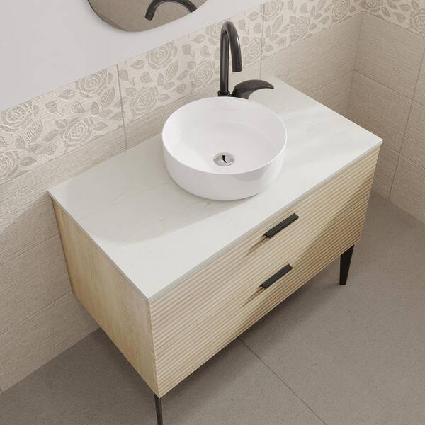 Aaby 36 in. W x 19 in. D Wall Mounted Floating Bath Vanity Cabinet in Brown with White Engineered Stone Top and Sink