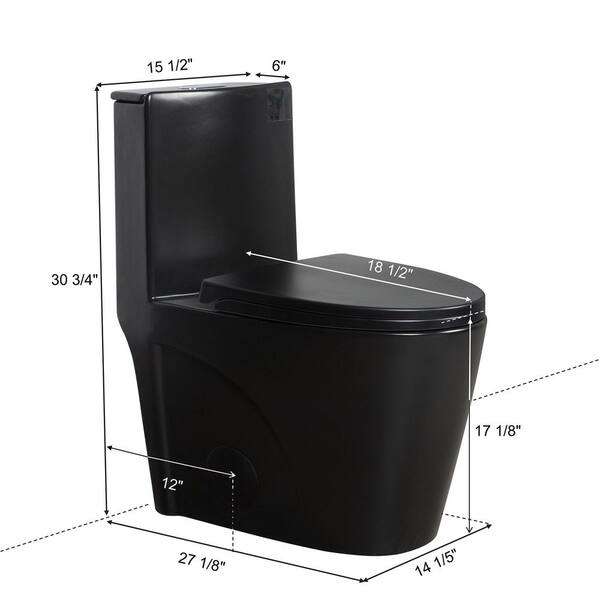 Bina 12 in. Rough in 1-Piece 1.1 GPF/1.6 GPF Dual Flush Elongated Toilet in Black Seat Included (Adjustable GPF)