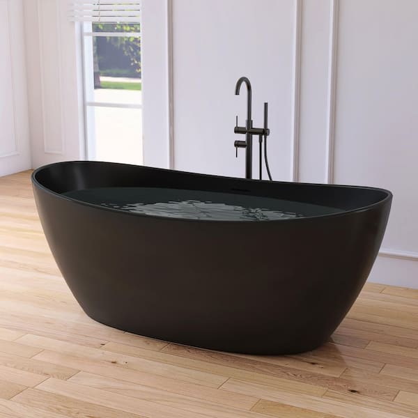 Cyrena 65 in. x 33.5 in. Stone Resin Solid Surface Flatbottom Freestanding Soaking Bathtub in Black