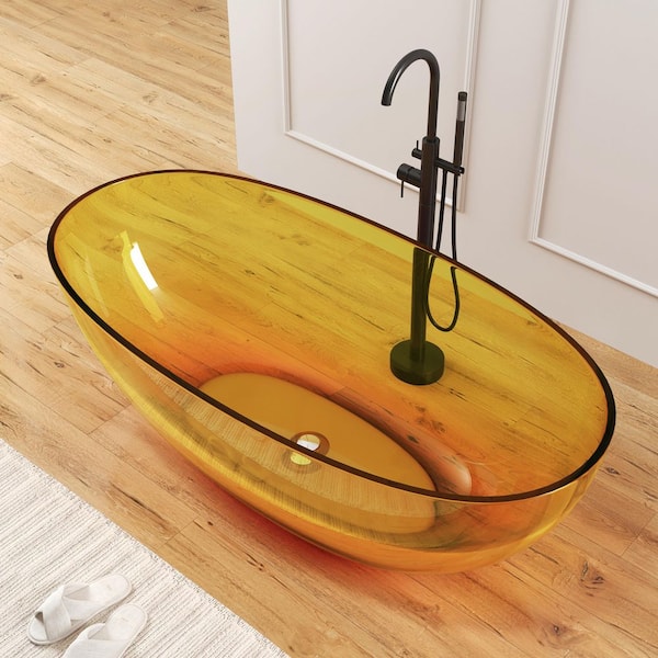 Eaton 61 in. x 30 in. Stone Resin Solid Surface Flatbottom Freestanding Soaking Bathtub in Transparent Orange