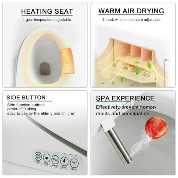 Elongated Smart Bidet Toilet 1.32 GPF in White with Auto Open/Close, Auto Flush, Heated Seat, Full Wash, and Kid Wash