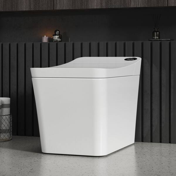 H-Z Elongated Smart Bidet Toilet 1.34 GPF in White with Auto Open/Close, Auto Flush, Heated Seat and Foot Sensor