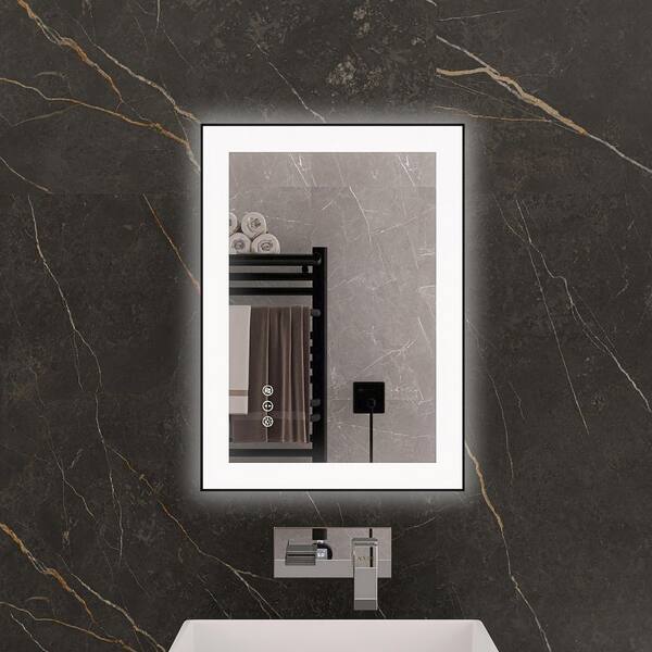 KariMo 20 in. W x 28 in. H Rectangular Black Framed Wall Bathroom Vanity Mirror with Backlit Front Light, Dimmable