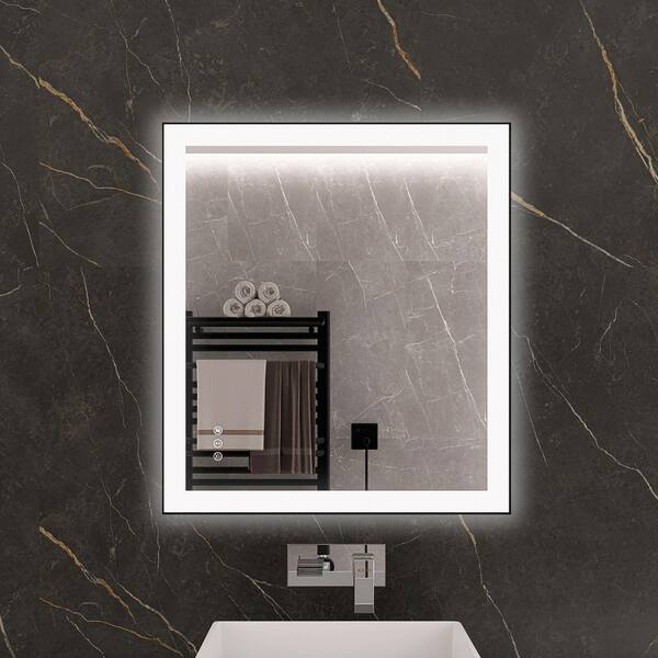 KariMo 32 in. W x 36 in. H Rectangular Black Framed Wall Bathroom Vanity Mirror with Backlit Front Light, Dimmable