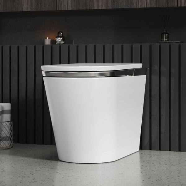 L-D Elongated Smart Toilet 1.34 GPF in Silver Seat with Auto Open/Close, Auto Flush and Heated Seat