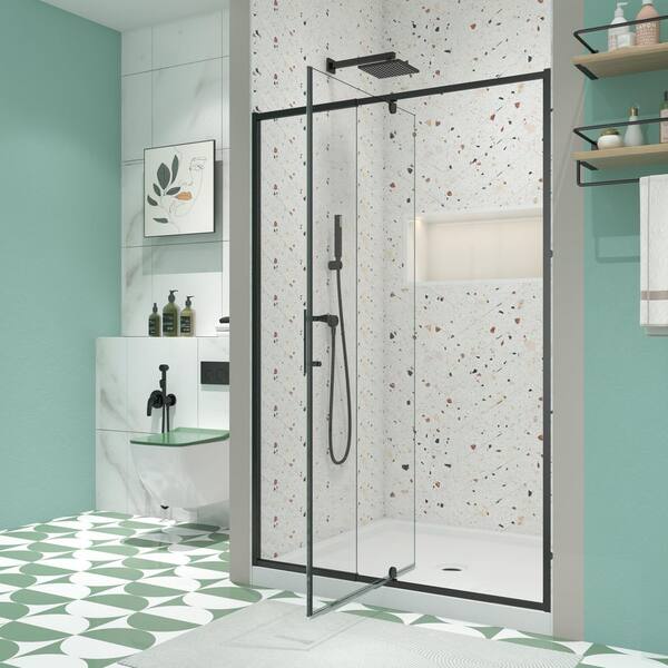 Pilas 60 in. W x 71 in. H Pivot Framed Shower Door in Black with 1/4 in. (6 mm) Clear Glass