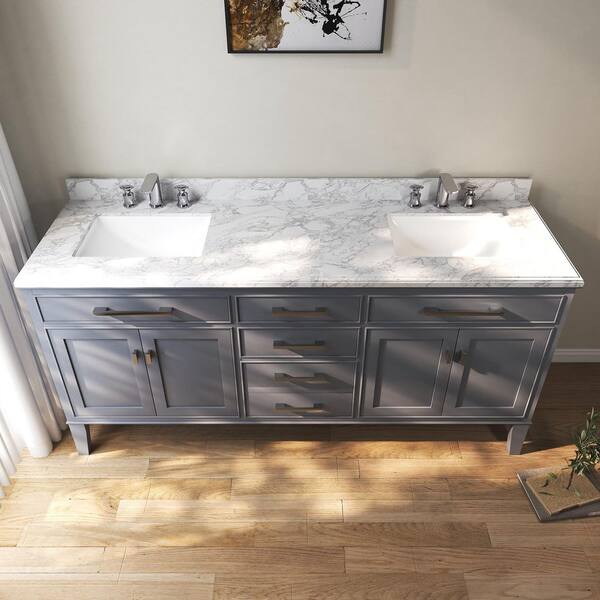 VLeaf 72 in. W x 21 in. D x 34.5 in. H Double Sinks Bath Vanity Cabinet in Maple Gray with Carrara Marble Top