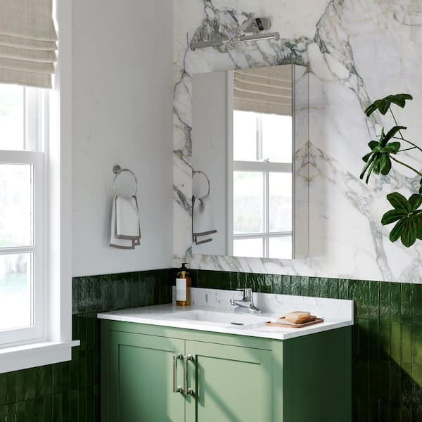 WYonder 20 in. W x 30 in. H Rectangular Aluminum Recessed/Surface Mount Right Swing Door Medicine Cabinet with Mirror