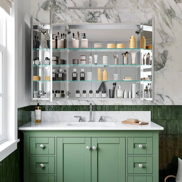 WYonder 40 in. W x 30 in. H Rectangular Aluminum Recessed/Surface Mount Medicine Cabinet with Mirror