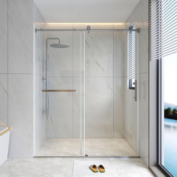 WYonder 60 in. W x 75 in. H Sliding Semi Frameless Shower Door in Chrome with 5/16 in. (8 mm) Clear Glass