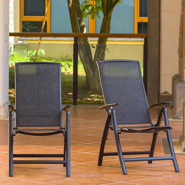 2-Piece Outdoor Folding Lawn Chairs, 7-Position Adjustable Patio Reclining Chairs for Garden, Dark Brown Aluminum Frame