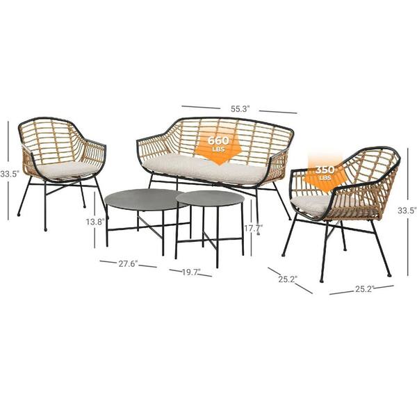 5-Piece Wicker Patio Conversation Set with Cushion, Loveseat, Chairs and Coffee Tables for Outdoor Balcony Porch Garden
