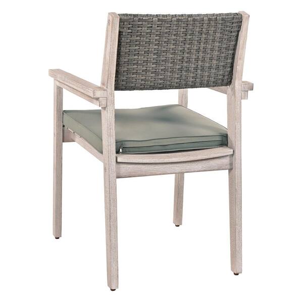 7-Piece Wood Outdoor Dining Set, Rectangle Patio Table and Arm Chairs with Rattan Backrest & Removable Green Cushions